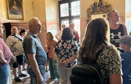 Nasza trzygodzinna wycieczka obfitowała w ciekawe momenty, w tym wyzwania takie jak wspinanie się po wąskich, krętych schodach. Szczególnie zapadły nam w pamięć trzy miejsca: zbrojownia, wystawa bursztynów oraz ogromny obraz bitwy pod Grunwaldem, namalowany przez ucznia Jana Matejki.