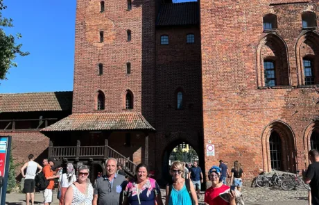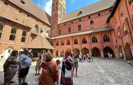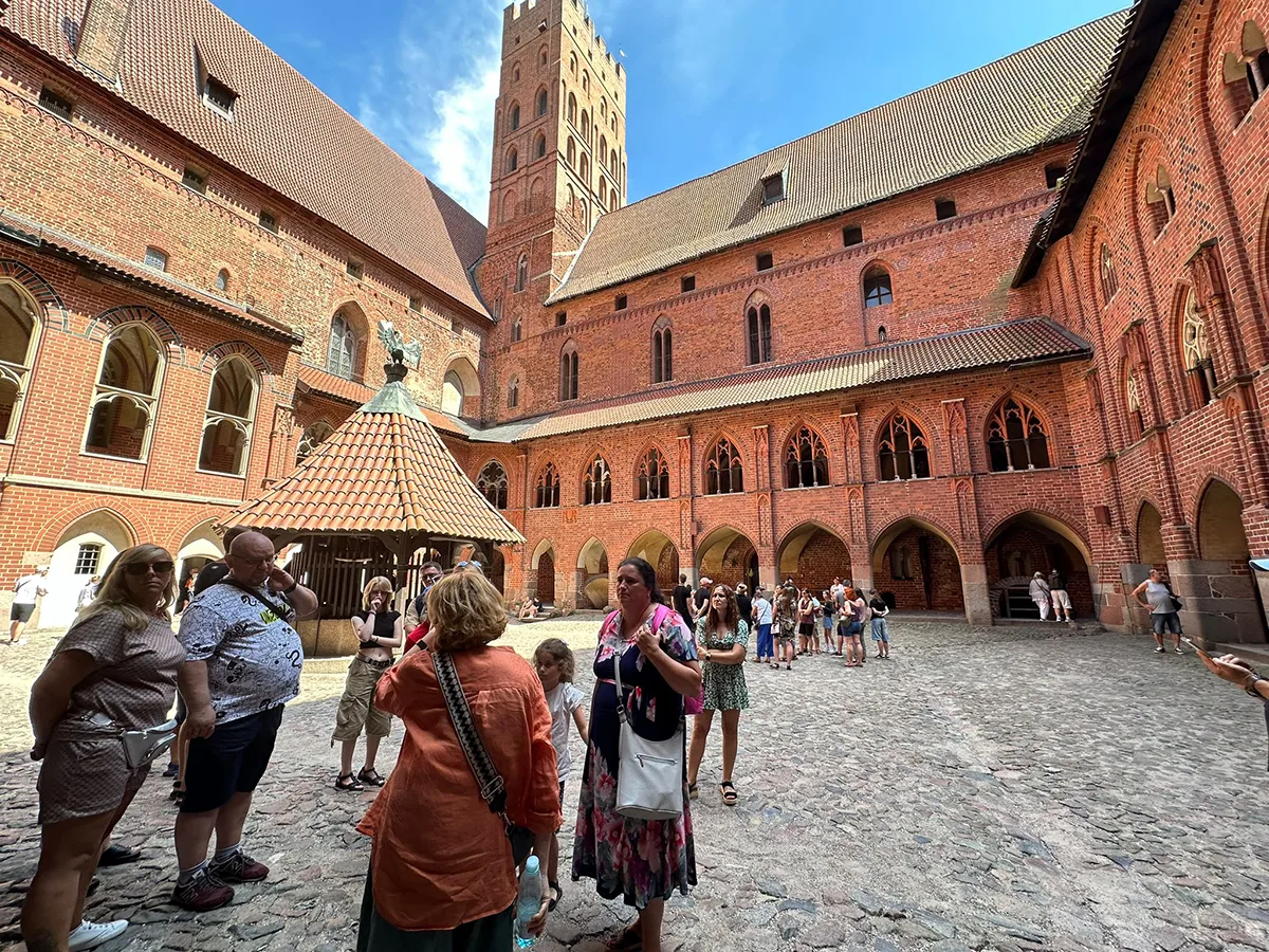 Malborski zamek, z bogatą historią i imponującą architekturą, zrobił na nas ogromne wrażenie. Choć wnętrza były skromne, czuć było obecność dawnych mieszkańców. W jednej z sal, którą przewodnik opisał jako sypialnię zakonnika, mały uczestnik z naszej grupy zapytał z uśmiechem: „A gdzie jest łóżko?”. Przewodniczka, również uśmiechnięta, odpowiedziała: „Poszło za zakonnikiem.” 😊